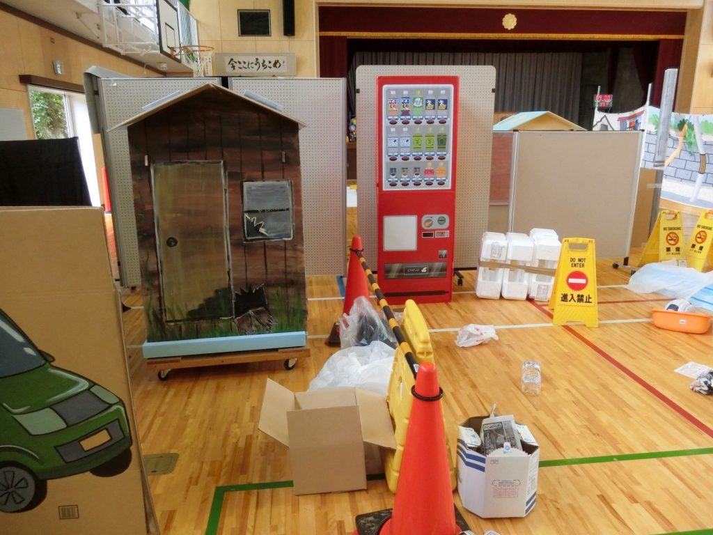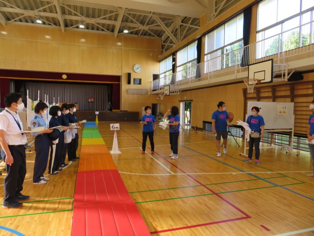 2日目は、学校の体育館と運動場を使い、先生方のみならず、千葉県警、保護者、地域ボランティア、企業の方々が「ハサミとカミはお友だち」の体験指導に当たりました。子どもたちは、実際に「その時」に応じた「ハサミとカミはお友だち」を体験することで、今までに無い「その時どうする」を積極的に身につけることができたとみられました。