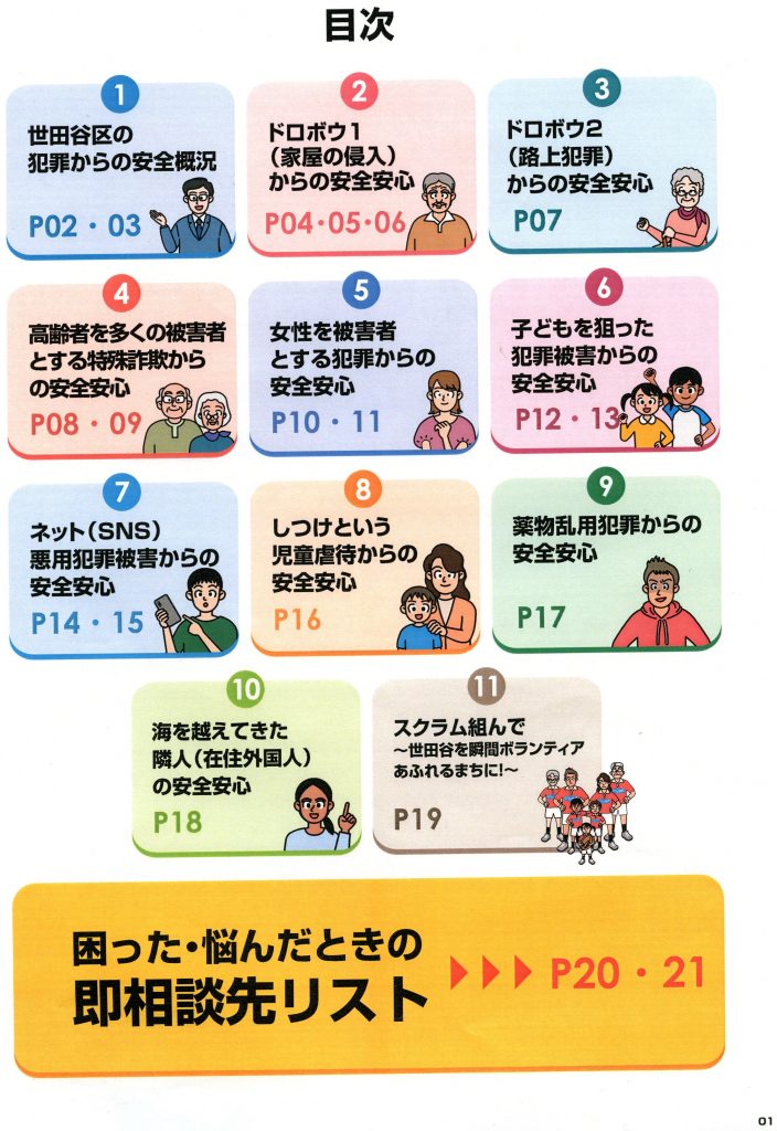 おそらく「防犯」という視点から、このような多様な問題を取り上げ、区民の安全安心確保を目指した冊子は、わが国で初めてではないかと思います。
