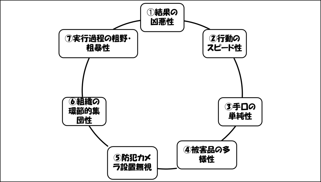 こうした視線を基にして作成したのが2023年01月24日という早い時期に記述した「~組織の大枠組み立て~」中の「図1 強盗集団の構造」であり、作成したが未発表な「連続強盗事件の特性(下図2)」であった。