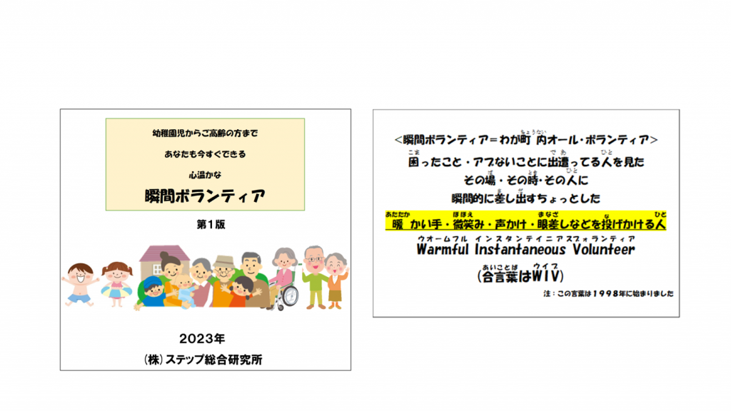 - 安全安心で上等な「町づくり」指導冊子「瞬間ボランテイア」を作成しました
